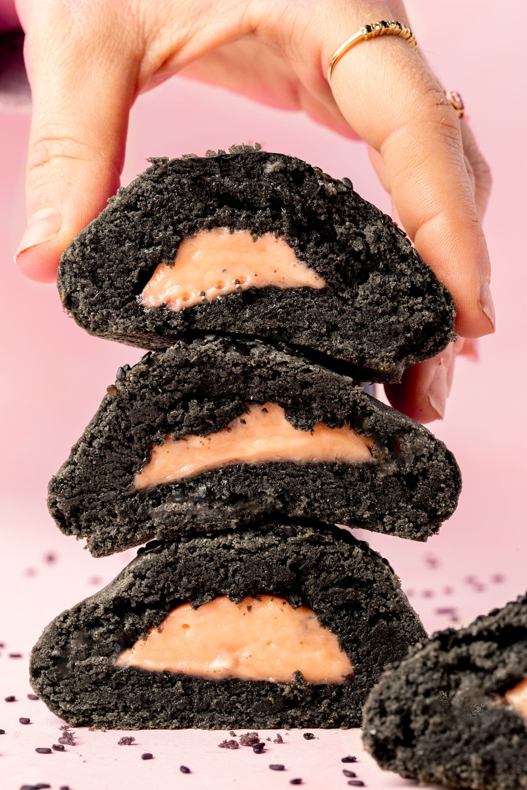Une pâte au sésame noir, et un cœur au litchi, super frais !